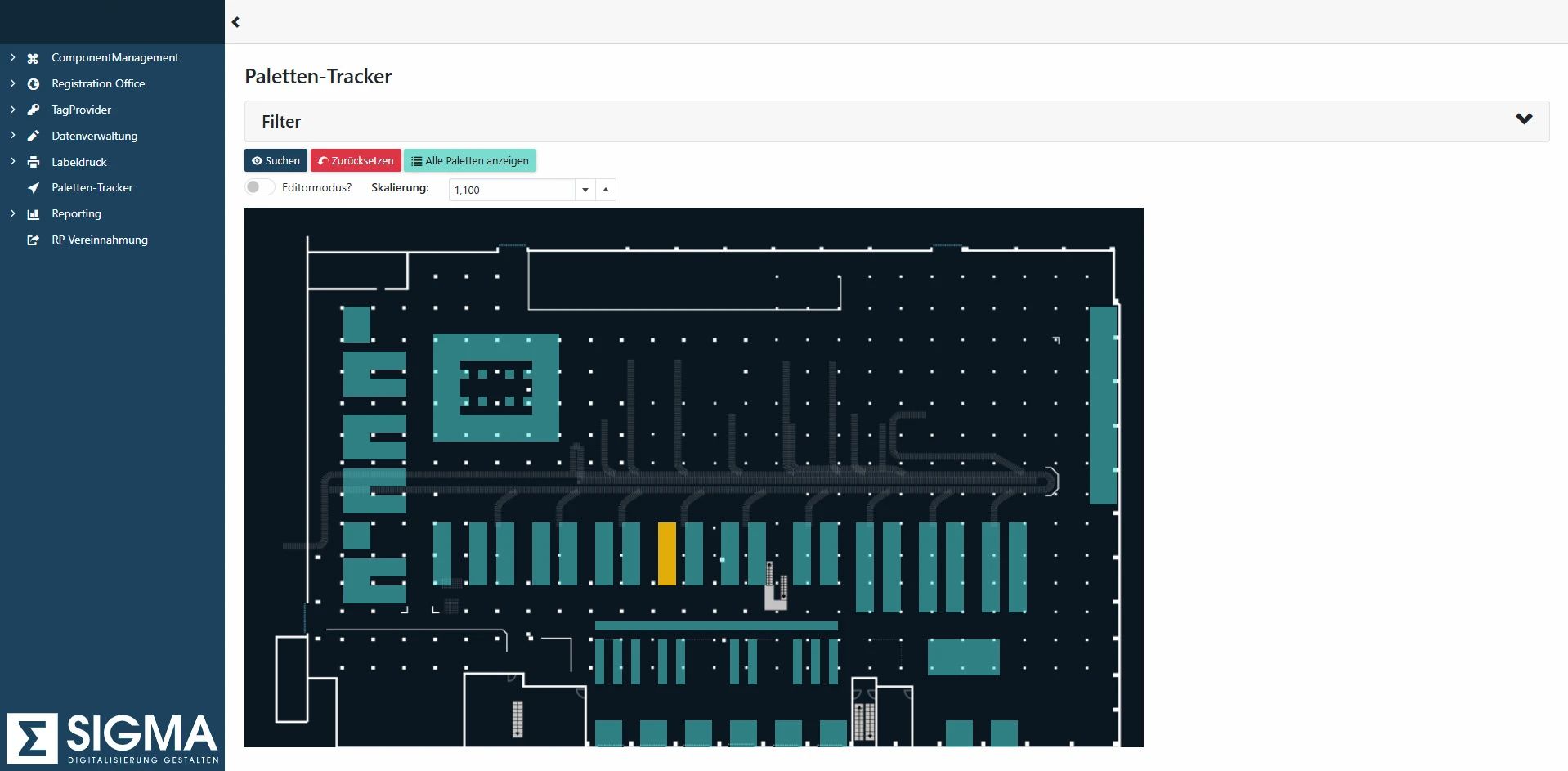 Über definierte RFID-Gates und Reader zeigt Ihnen der PalletTracker immer genau, welche Palette sich gerade in welchem Bereich befindet.